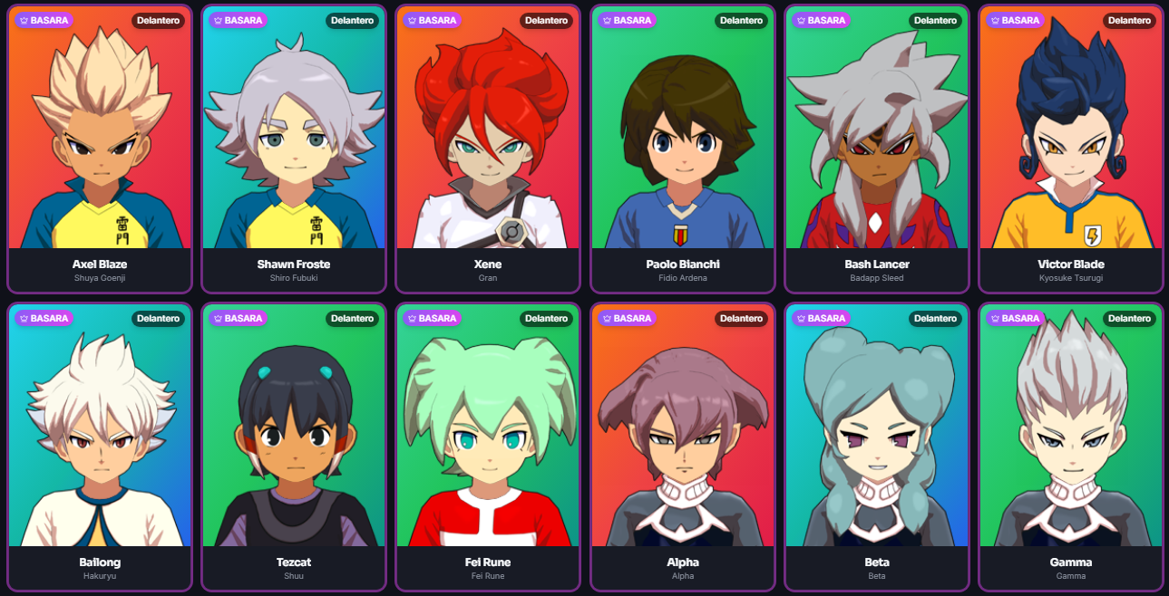 Bienvenido a InaZumo, la base de datos definitiva de Inazuma Eleven Victory Road. Aquí encontrarás información completa sobre más de 4000 jugadores, incluyendo sus estadísticas, elementos, posiciones y arquetipos.